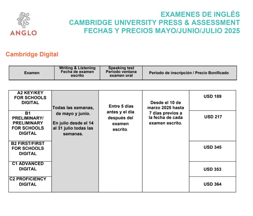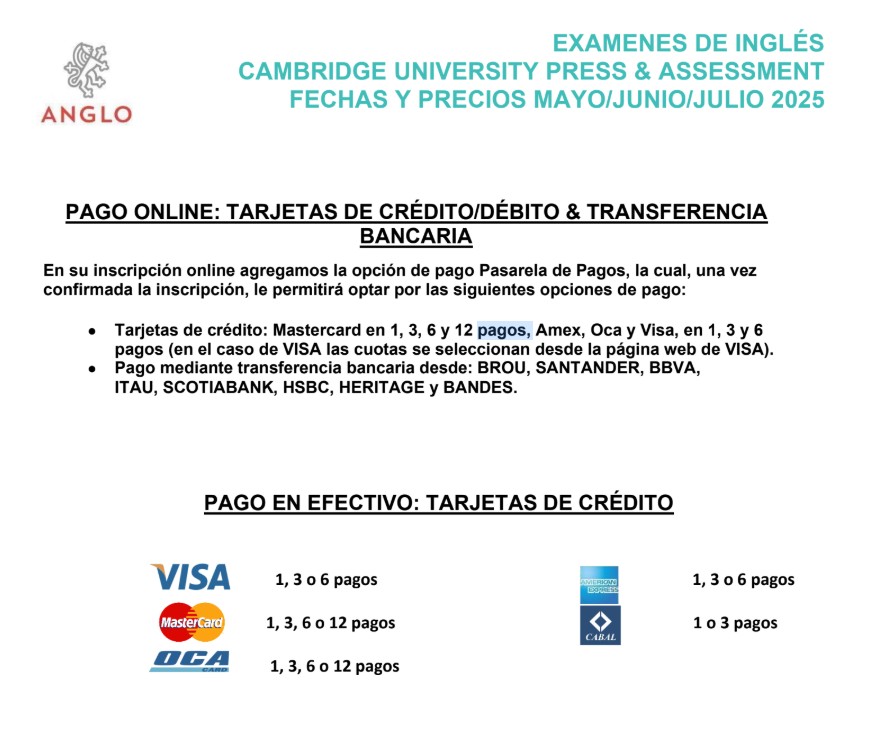 Por otras fechas consultar a inscripcionescambridge@anglo.edu.uy